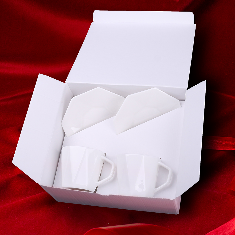Ein prestigeträchtiges Set aus Tassen der Tiara-Kollektion, gefertigt aus hochwertigem Fine Bone China Porzellan. Mit höchster Sorgfalt verarbeitet, überraschen sie durch ihre geometrische, moderne Form. Das Set ist in einer speziellen umweltfreundlichen Enlight-Verpackung verpackt und mit einer eleganten personalisierten Banderole versehen. DIE DARGESTELLTE VERZIERUNG DIENT NUR ZUR VERANSCHAULICHUNG UND IST NICHT IM PRODUKTPREIS ENTHALTEN. DAS SET IST IN EINER SPEZIELLEN ENLIGHT-VERPACKUNG MIT EINER AUSGEWÄHLTEN VERZIERUNGSOPTION ERHÄLTLICH.
